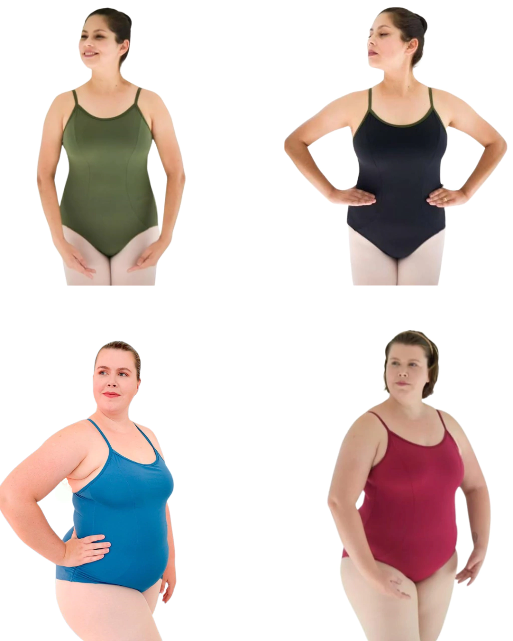 Collant em suplex poliamida, modelagem mais acinturada e regulagem nas alças.
